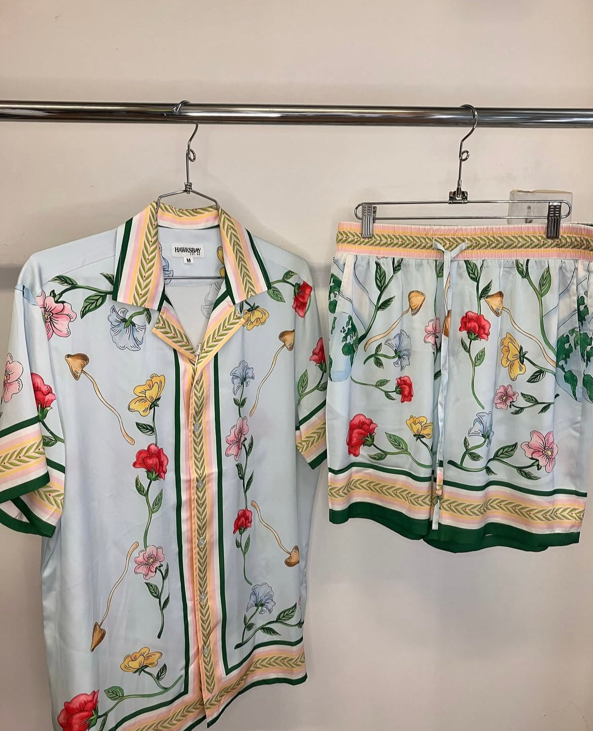 Men's Floral Printed Sateen Short With Contrasting Floral Print and Border Print