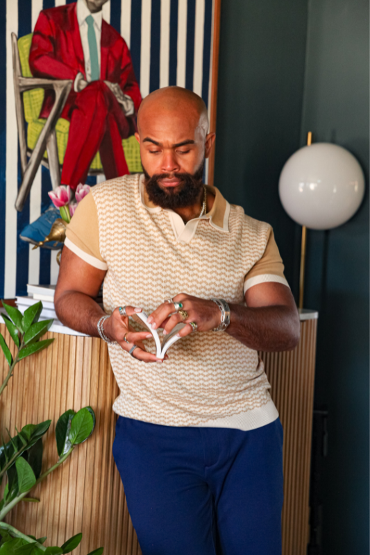 Men's Textured Polo Shirt with a retro vibe. Has a relaxed fit and features a lapel collar