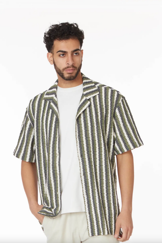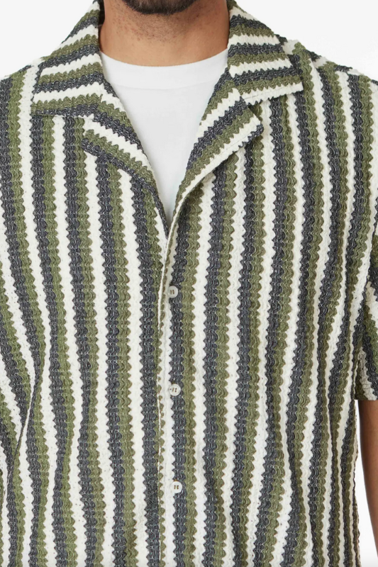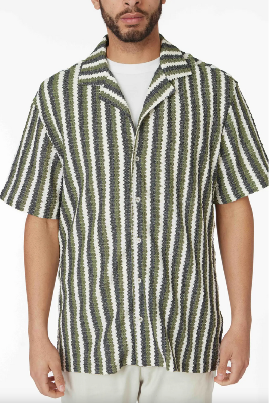 Men's Crochet Textured Shirt with Front Button Closure